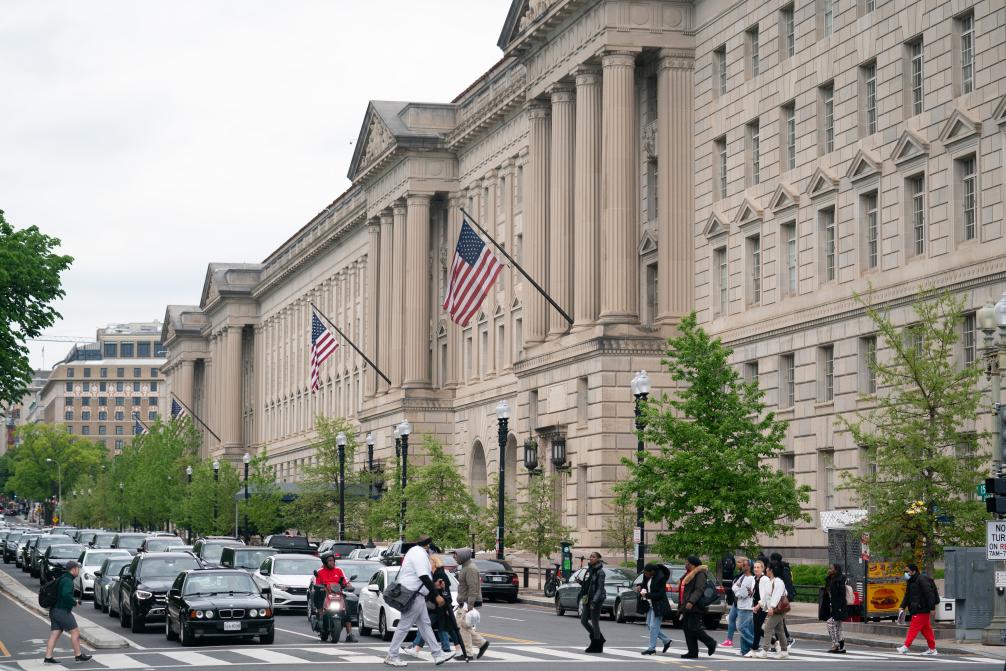這是2024年4月25日在美國首都華盛頓拍攝的商務部大樓。新華社記者劉杰攝