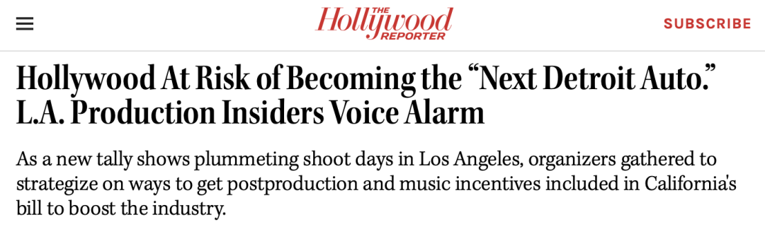 ?。逗萌R塢報道者》發(fā)表題為《好萊塢或成為下一個底特律》的文章,指出好萊塢最后可能只剩一具空殼。