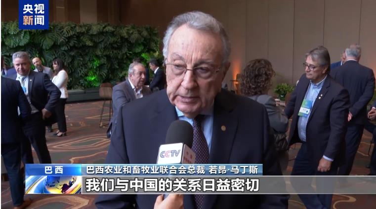 巴西農業(yè)和畜牧業(yè)聯(lián)合會總裁 若昂·馬丁斯:我們與中國的關系日益密切,我們期望中國繼續(xù)成為巴西農業(yè)非常重要的合作伙伴。
