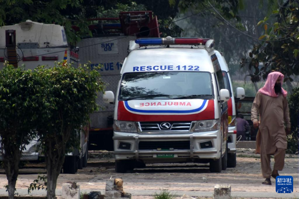 5月7日,救護車停在巴基斯坦東部旁遮普省謝赫布拉地區(qū)穆里德蓋鎮(zhèn)遭印度導(dǎo)彈破壞的建筑附近。新華社發(fā)(薩賈德攝)