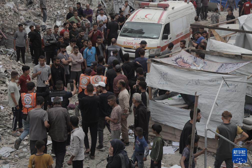5月15日,在加沙地帶北部杰巴利耶難民營,人們?cè)谝攒娹Z炸后開展救援。新華社發(fā)(阿卜杜勒·拉赫曼·薩拉馬攝)
