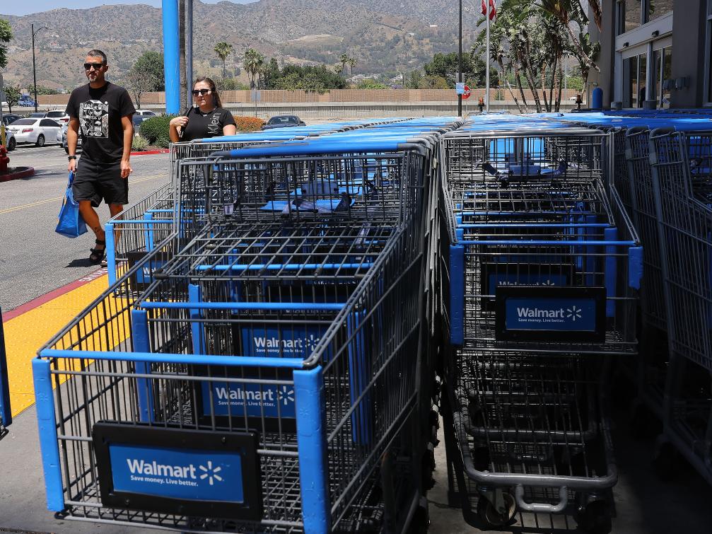 5月21日,顧客在美國加利福尼亞州舊金山灣區(qū)圣萊安德羅的一家沃爾瑪超市購物。新華社記者 吳曉凌 攝