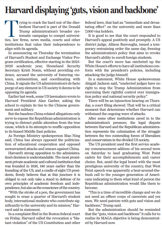 在其他一些機(jī)構(gòu)屈服于美國政府壓力之后,哈佛大學(xué)與美國政府之間的斗法表明,美國社會(huì)日益撕裂,矛盾重重,斗爭激烈。