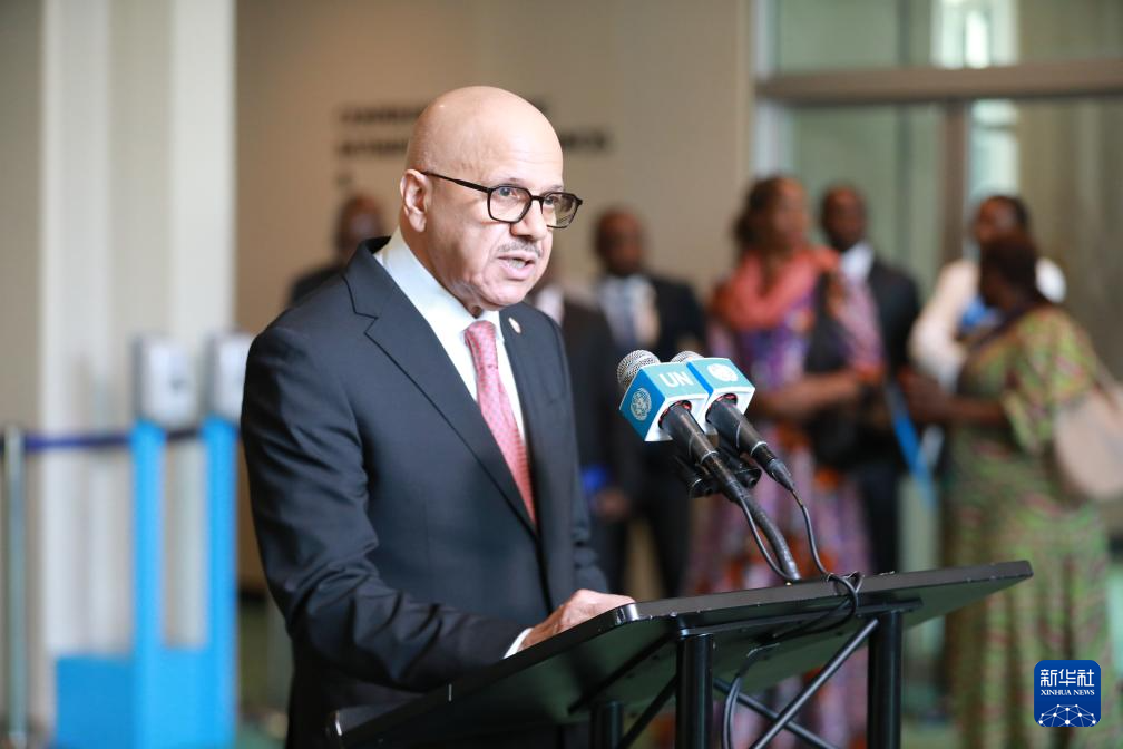 6月3日,在位于紐約的聯(lián)合國總部,利比里亞副外長格雷在利比里亞當選聯(lián)合國安理會非常任理事國后講話。新華社記者 謝鍔 攝