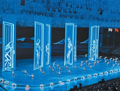 在哈爾濱第九屆亞洲冬季運動會開幕式上,巴可投影機呈現(xiàn)精彩的舞美效果。