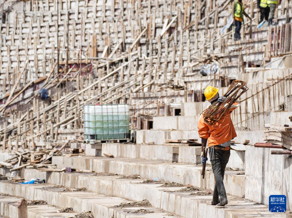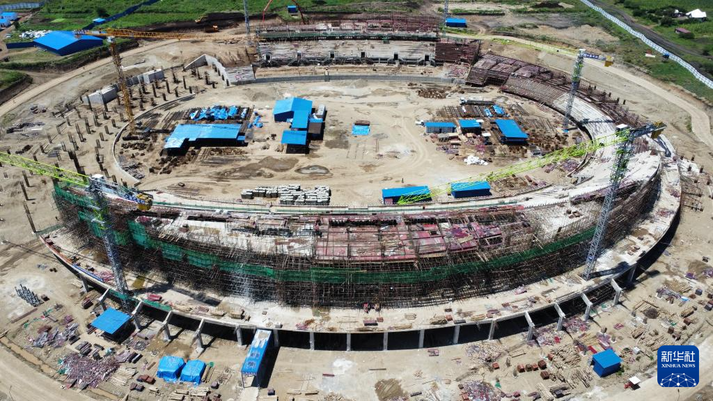 這是坦桑尼亞北部城市阿魯沙的一片繁忙工地:六座高聳的塔吊伸展著鋼鐵巨臂,在高空精準吊運建材;焊接聲、機械轟鳴聲與指令聲此起彼伏,交織成一首建設(shè)交響曲;上千名工人頭戴安全帽、身著反光背心,正全力拉滿施工“進度條”……一座現(xiàn)代化體育場已初具雛形。