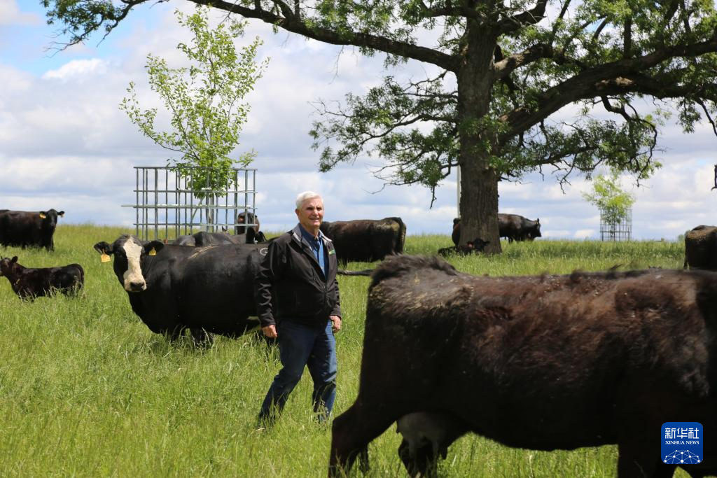 5月22日,在美國艾奧瓦州,比爾·佩利特查看養(yǎng)殖的牛群。新華社記者 劉亞南 攝