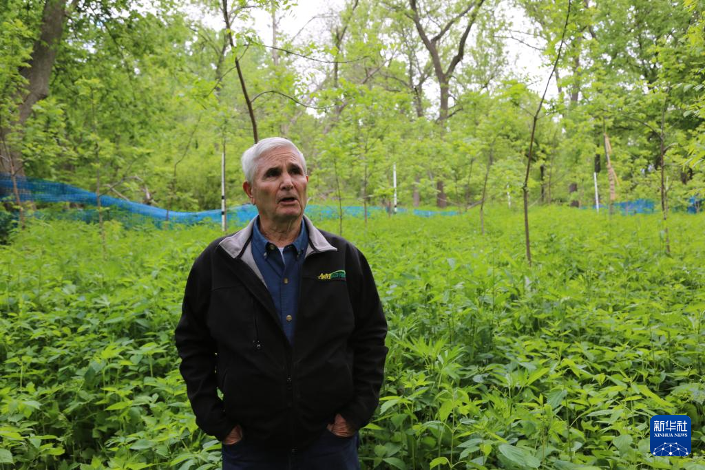5月22日,在美國艾奧瓦州,比爾·佩利特查看種植的農(nóng)作物。新華社記者 劉亞南 攝