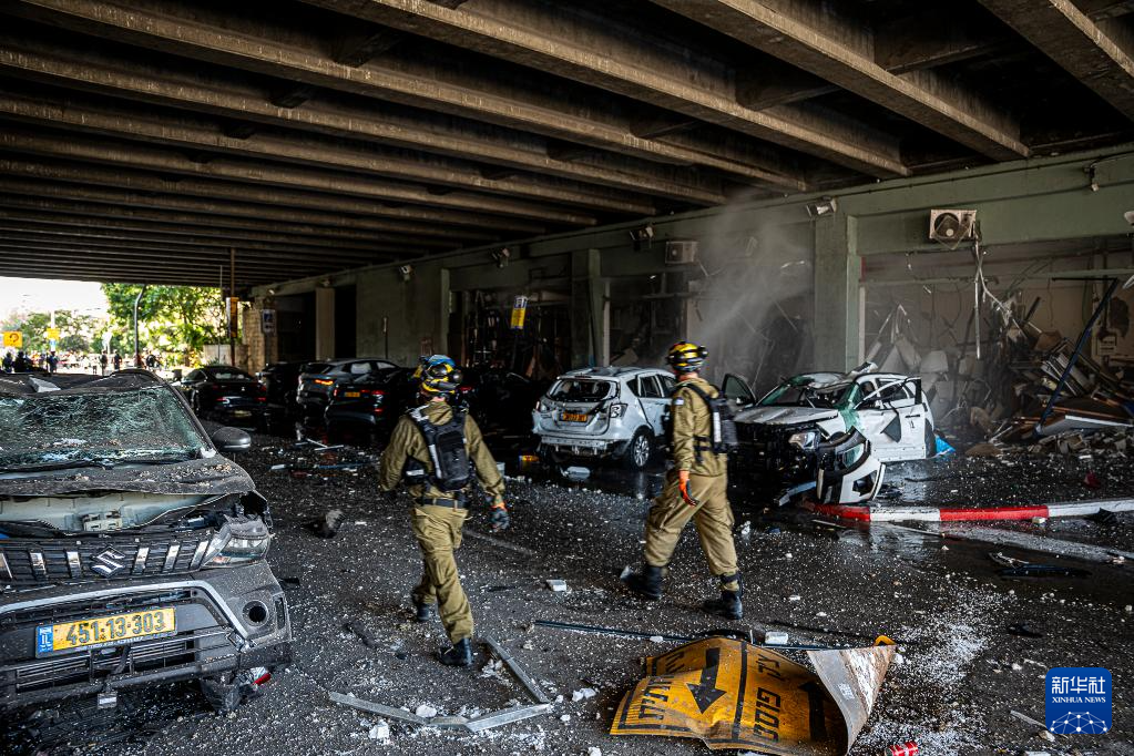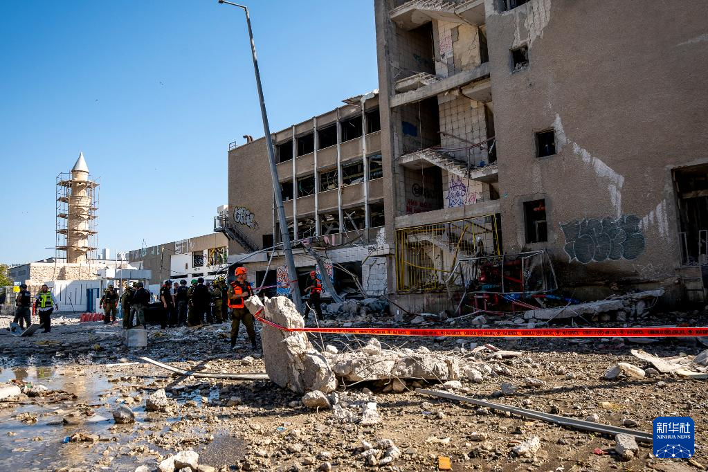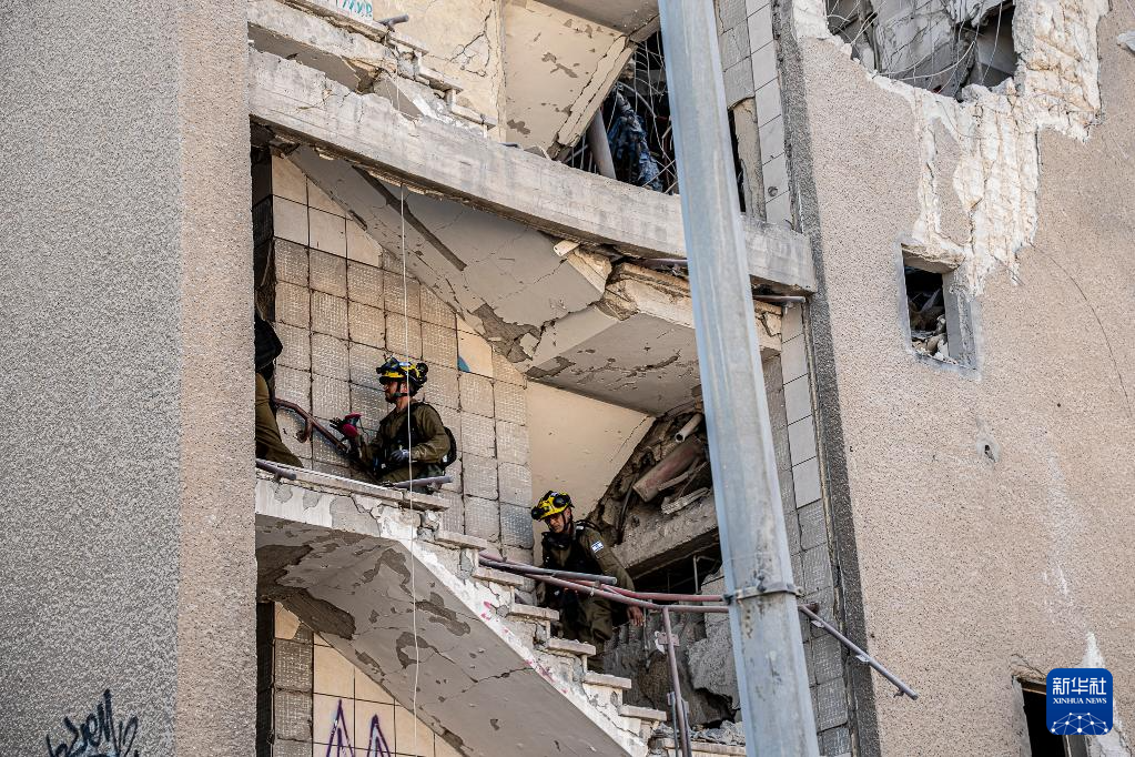 6月20日,安全和救援人員在以色列北部海法的導彈襲擊現場工作。新華社/基尼圖片社