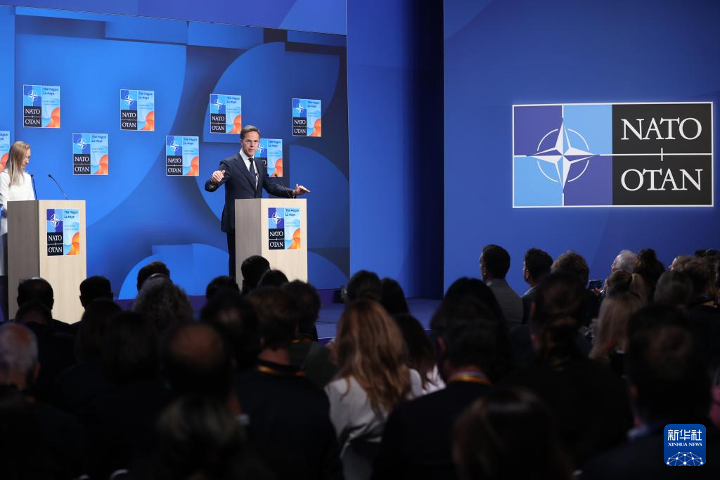 6月25日,在荷蘭海牙,北約秘書長呂特在北約峰會期間出席新聞發(fā)布會。新華社記者 趙丁喆 攝
