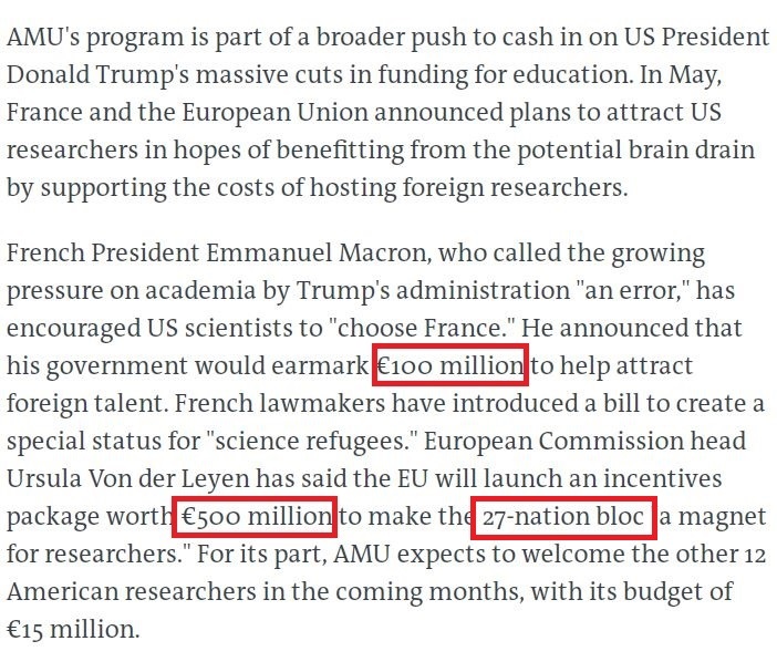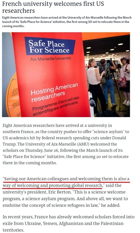 用艾克斯-馬賽大學(xué)校長(zhǎng)埃里克·伯頓的話說(shuō),“拯救并歡迎我們的美國(guó)同事也是促進(jìn)全球科研事業(yè)的一種方式”。