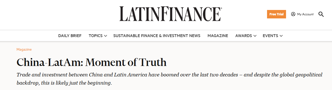 長期關注拉美及加勒比地區(qū)發(fā)展的《拉美金融》雜志最近的一篇文章,聚焦了過去二十年拉丁美洲與中國之間貿易和投資的蓬勃發(fā)展。文章指出,盡管當前全球地緣政治形勢復雜,但拉美與中國這種良好的發(fā)展勢頭可能僅僅是雙方合作的開端。