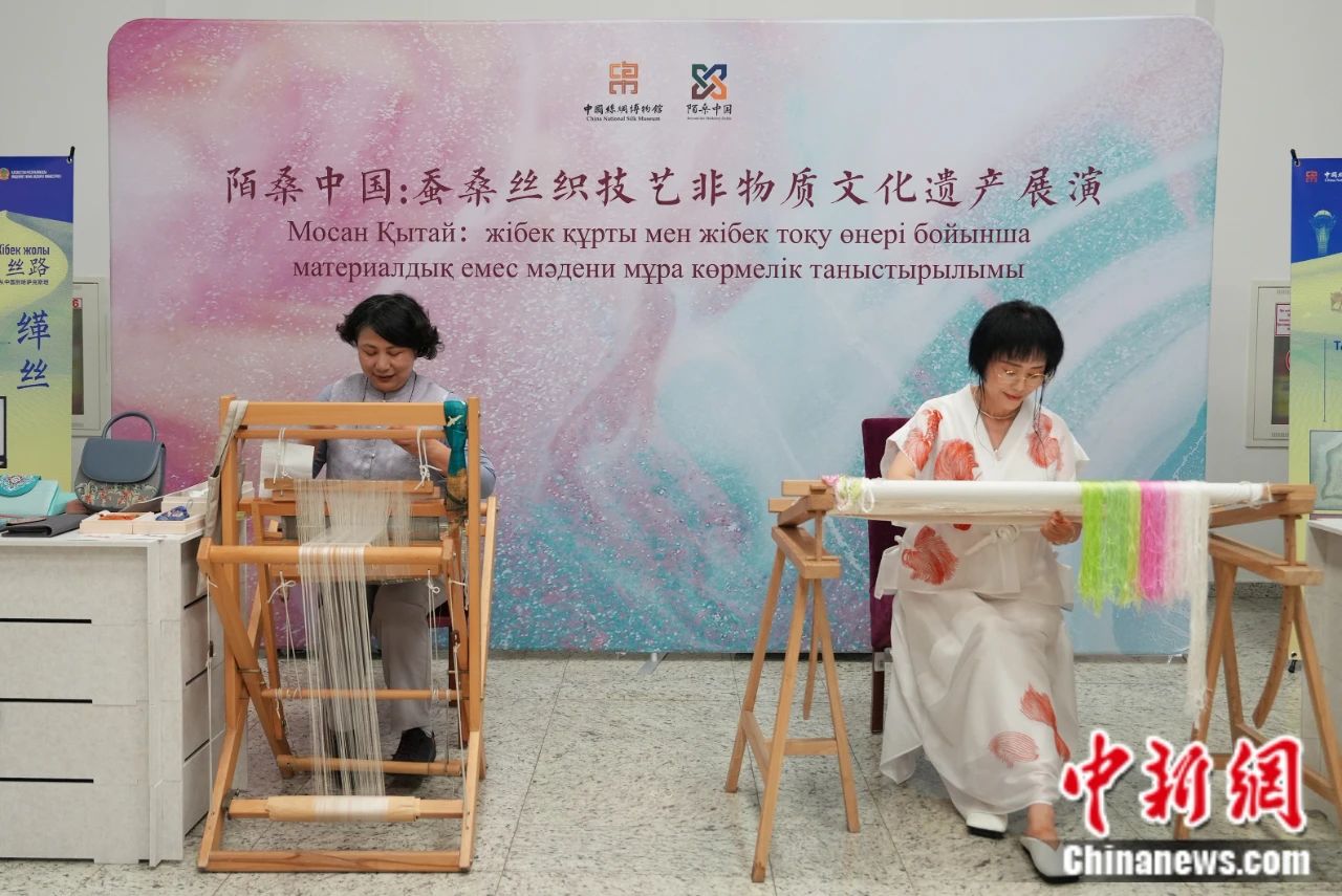 當(dāng)?shù)貢r(shí)間2025年6月16日,哈薩克斯坦“中國旅游年”開幕式在位于阿斯塔納的哈薩克斯坦國家博物館舉行。圖為手工藝者在非遺體驗(yàn)活動(dòng)中演示緙絲、臺(tái)繡等傳統(tǒng)技藝。 中新社記者 單璐 攝