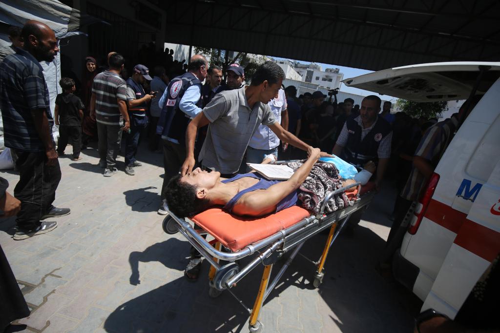 7月20日,傷員被轉移至加沙城的一所醫(yī)院。新華社發(fā)(里澤克·阿卜杜勒賈瓦德攝)