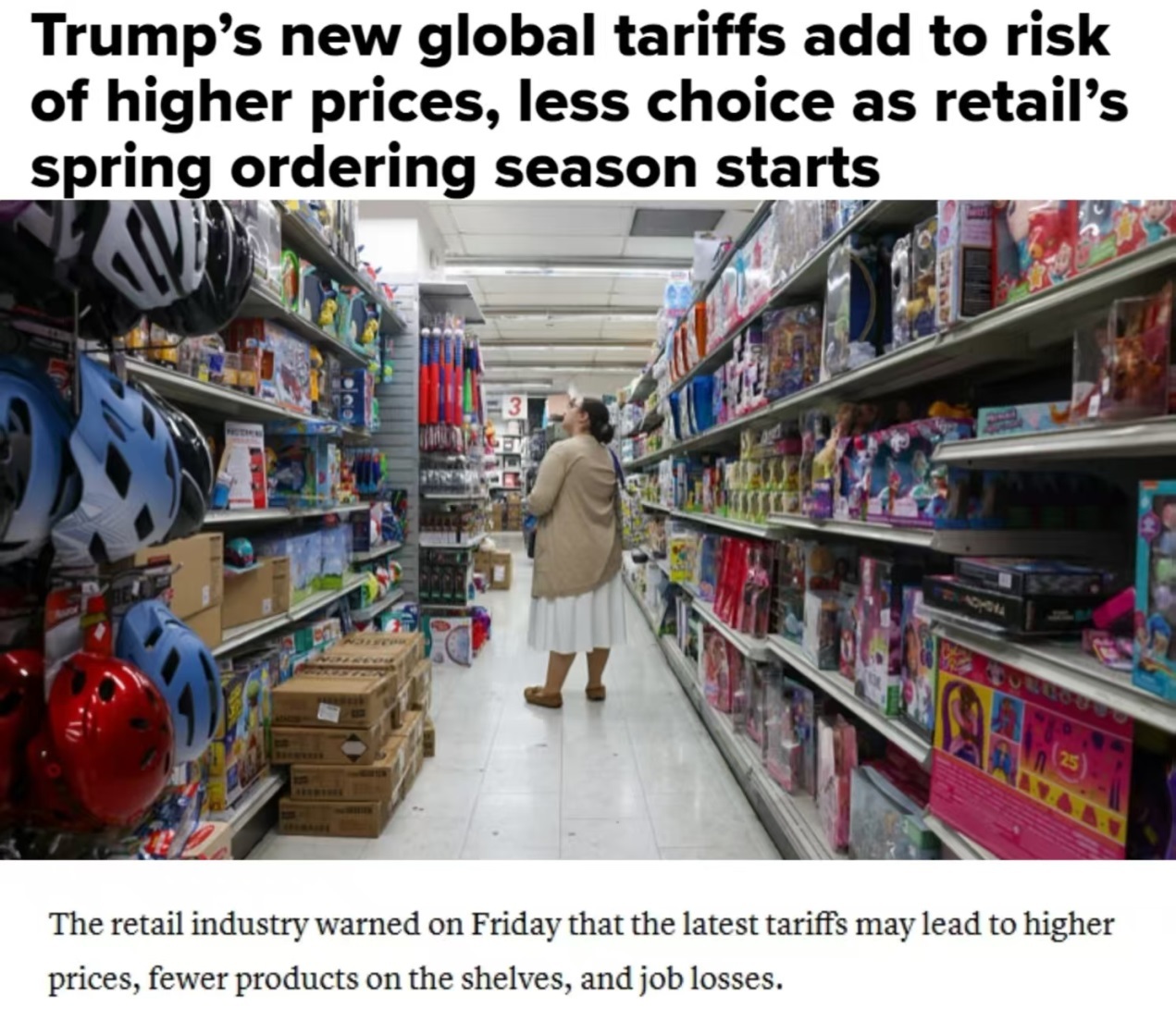 與此同時,美國政府的關稅政策反而使零售業(yè)加速裁員。報告顯示,截至7月,零售商宣布削減超8萬個崗位,同比激增近250%。報告還警告稱,最新關稅政策可能導致物價上漲、貨架商品減少以及就業(yè)崗位流失。