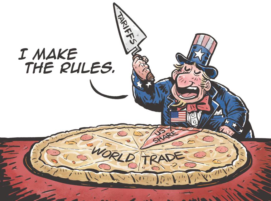 文章指出,歷史上曾有過這樣的時刻:隨著國際關系中的公平表象消退,粗暴的權力博弈卷土重來。這種情況同樣適用于當代全球貿易體系。過去幾十年里,美國一直宣稱,這套貿易體系立足于開放的市場、以規(guī)則為基礎的秩序以及互惠互利,構成了良性循環(huán)。