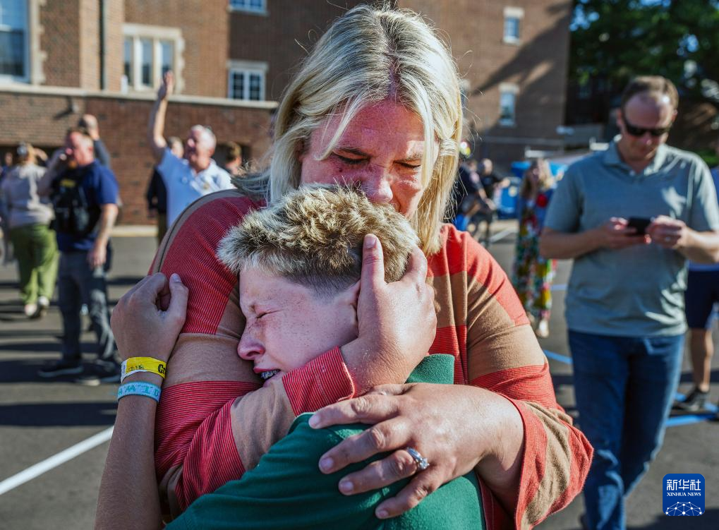 8月27日,在美國明尼蘇達(dá)州明尼阿波利斯市南部一所學(xué)校,一名母親安慰自己的孩子。新華社/美聯(lián)