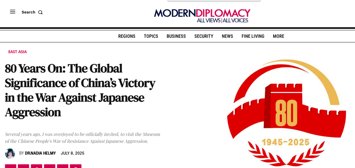 文章說,2025年是世界反法西斯戰(zhàn)爭勝利80周年,國際社會應更加深刻地銘記中國抵抗日本軍國主義侵略所付出的巨大犧牲。中國人民抗日戰(zhàn)爭不僅是民族保衛(wèi)戰(zhàn),更是全球反法西斯戰(zhàn)爭的基石。80年后的今天,世界應重新審視中國在二戰(zhàn)中的貢獻,避免歷史悲劇重演。