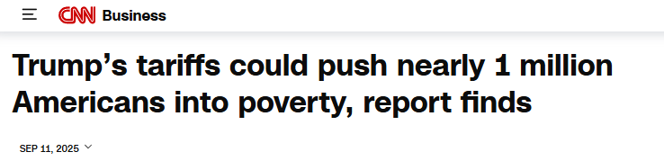 9日發(fā)布的這份報告顯示,關稅上調預計到2026年將使美國貧困人口增加87.5萬人,其中包括37.5萬兒童。該預測基于以稅前收入為基礎的官方貧困衡量標準。若采用更全面的“補充貧困指標”進行評估,納入食品補助、托育和醫(yī)療開支等因素,關稅政策仍將導致2026年貧困人口增加65萬人,包括15萬兒童,進而推高貧困率。