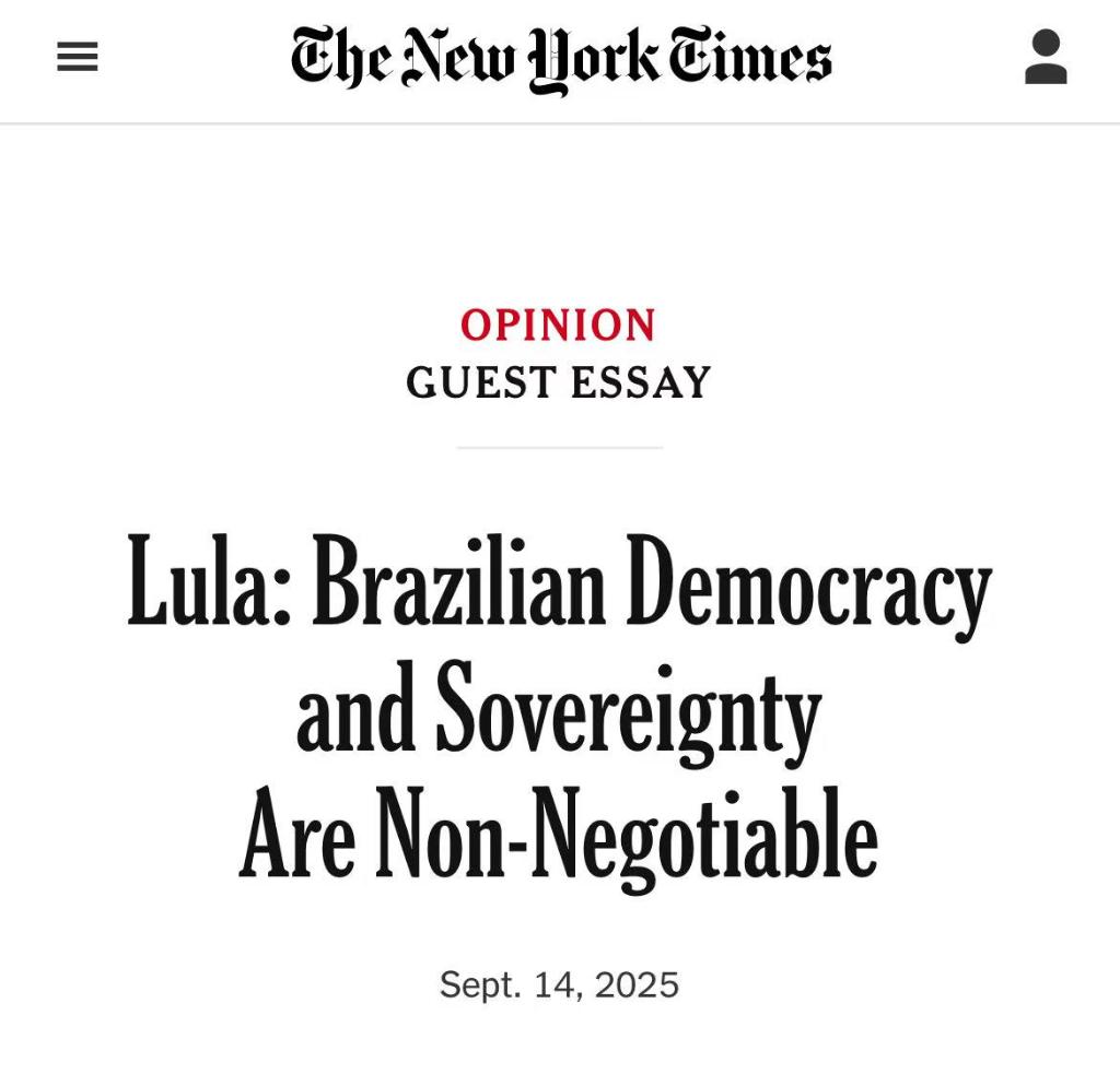 巴西總統(tǒng)盧拉9月14日在美國(guó)《紐約時(shí)報(bào)》觀點(diǎn)專欄發(fā)表客座文章。