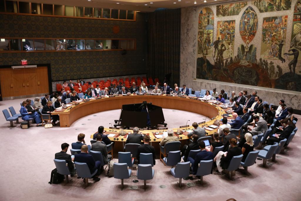 2025年6月24日,在位于紐約的聯(lián)合國總部,安理會召開伊朗核問題公開會。新華社記者謝鍔攝