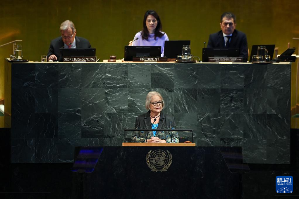 9月22日,在位于紐約的聯(lián)合國(guó)總部,第80屆聯(lián)合國(guó)大會(huì)主席安娜萊娜·貝爾伯克(前)在紀(jì)念聯(lián)合國(guó)成立80周年高級(jí)別會(huì)議上講話。新華社記者 李睿 攝