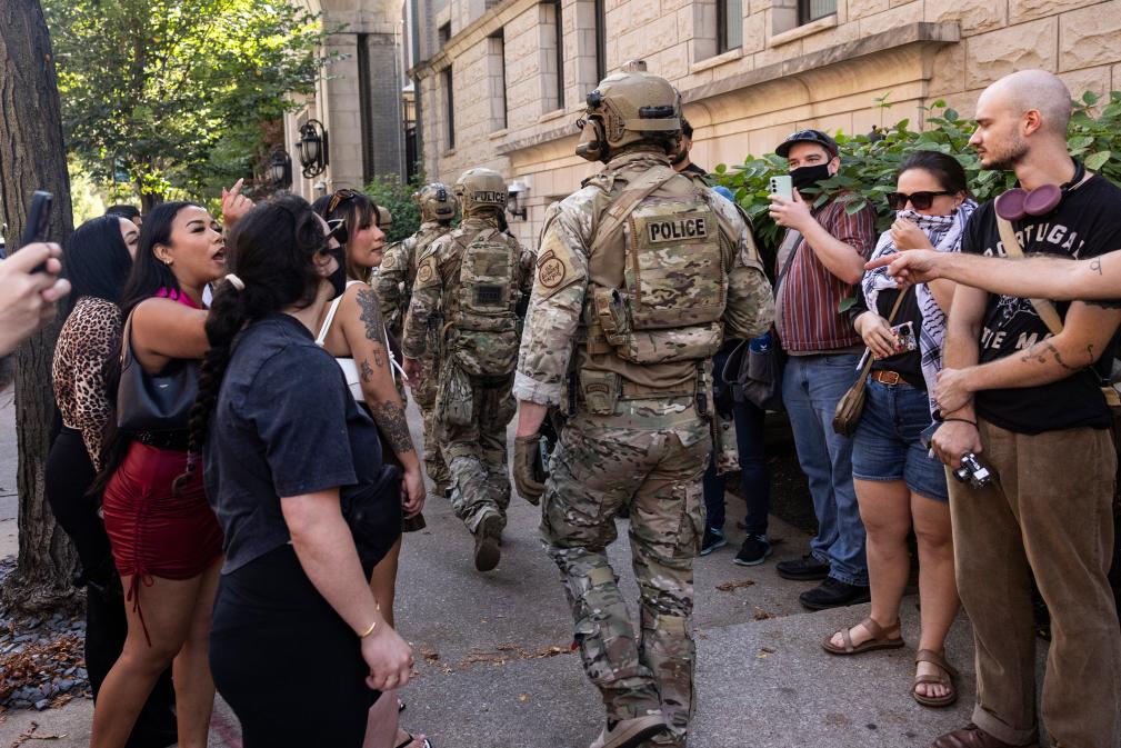 據(jù)美聯(lián)社報(bào)道,28日,數(shù)十名全副武裝的聯(lián)邦執(zhí)法人員在芝加哥市一些著名的旅游和購(gòu)物區(qū)巡邏,吸引不少購(gòu)物者和在街邊咖啡館用餐的家庭注意,許多人拿出手機(jī)錄像。