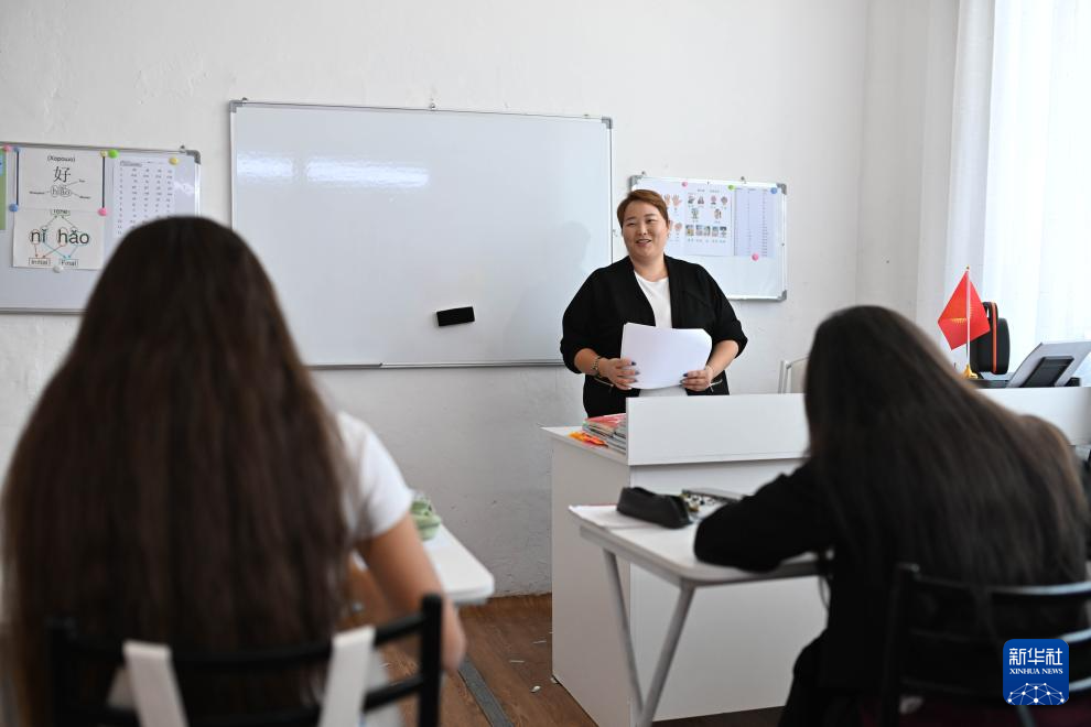 9月22日,在吉爾吉斯斯坦伊塞克湖州卡拉庫爾市,庫巴內(nèi)奇別科娃在中文培訓中心授課。新華社記者 李任滋 攝
