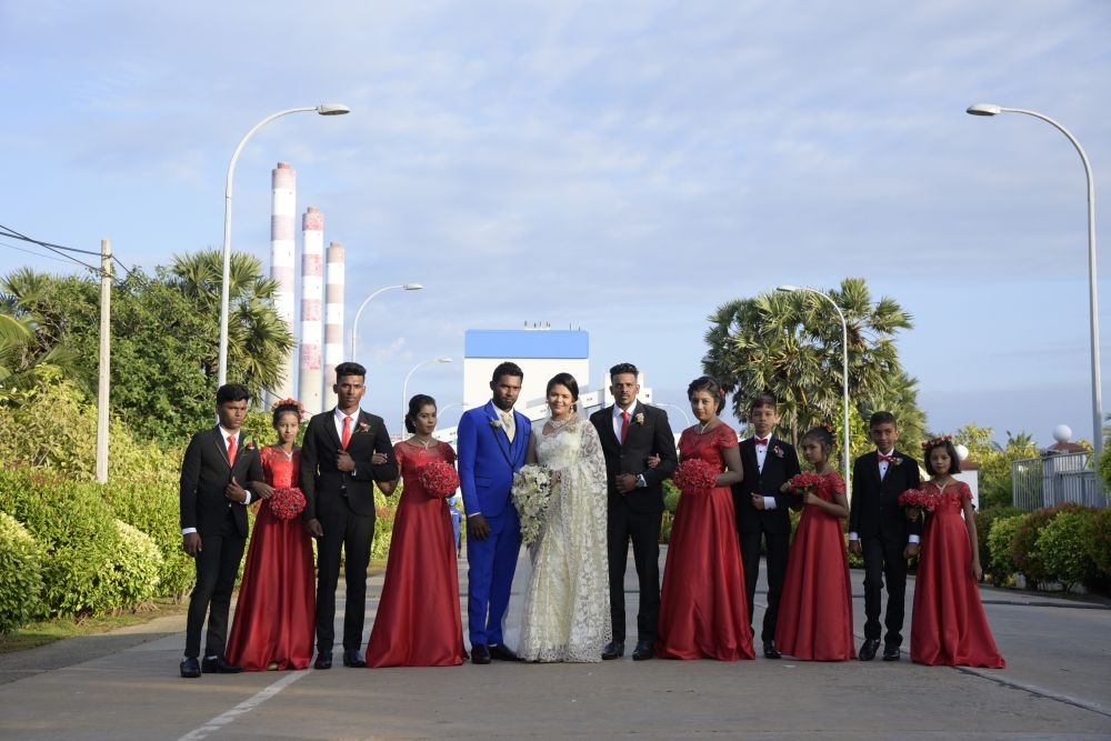 2025年1月10日,在斯里蘭卡卡爾皮提亞的普特拉姆燃煤電站,一對新人拍攝婚紗照。新華社發(fā)(中國機械設(shè)備工程普特拉姆燃煤電站項目供圖)