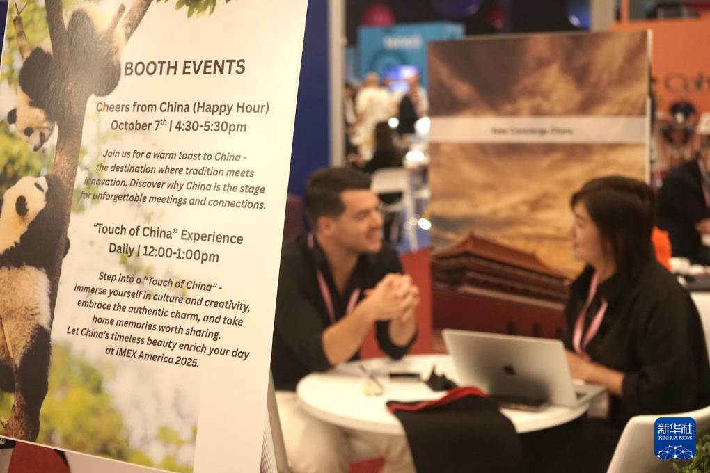 10月8日,在美國拉斯維加斯,人們在2025年美國國際會(huì)議與獎(jiǎng)勵(lì)旅游展的中國展區(qū)參觀。 新華社發(fā)(曾慧攝)