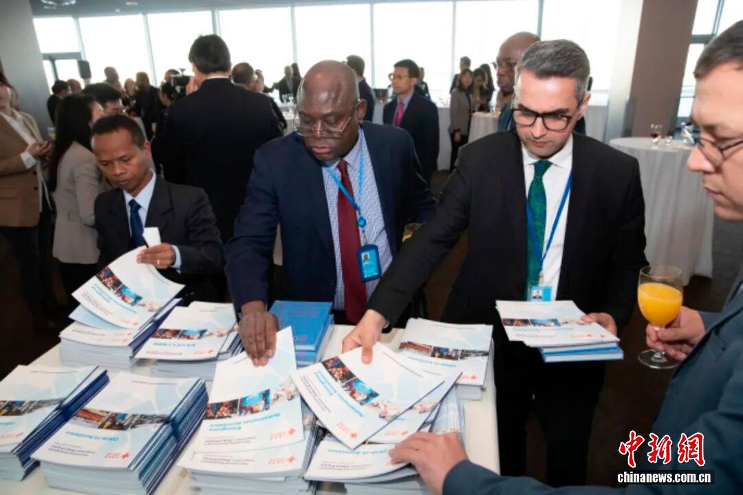 當(dāng)?shù)貢r間2023年4月19日,“全球發(fā)展倡議新進展可持續(xù)發(fā)展議程新行動”主題展覽在紐約聯(lián)合國總部舉行。圖為與會嘉賓取閱國合署發(fā)布的新報告——《國際發(fā)展合作的中國實踐》。 中新社記者 廖攀 攝