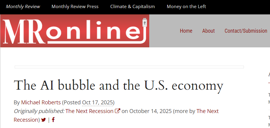 彭博社專(zhuān)欄文章評(píng)論稱(chēng),美國(guó)AI產(chǎn)業(yè)被神話(huà)為GDP增長(zhǎng)引擎,卻弱化了勞動(dòng)力市場(chǎng)需求。虛擬投資雖抬高GDP數(shù)字,但掩蓋了實(shí)體經(jīng)濟(jì)的萎縮。