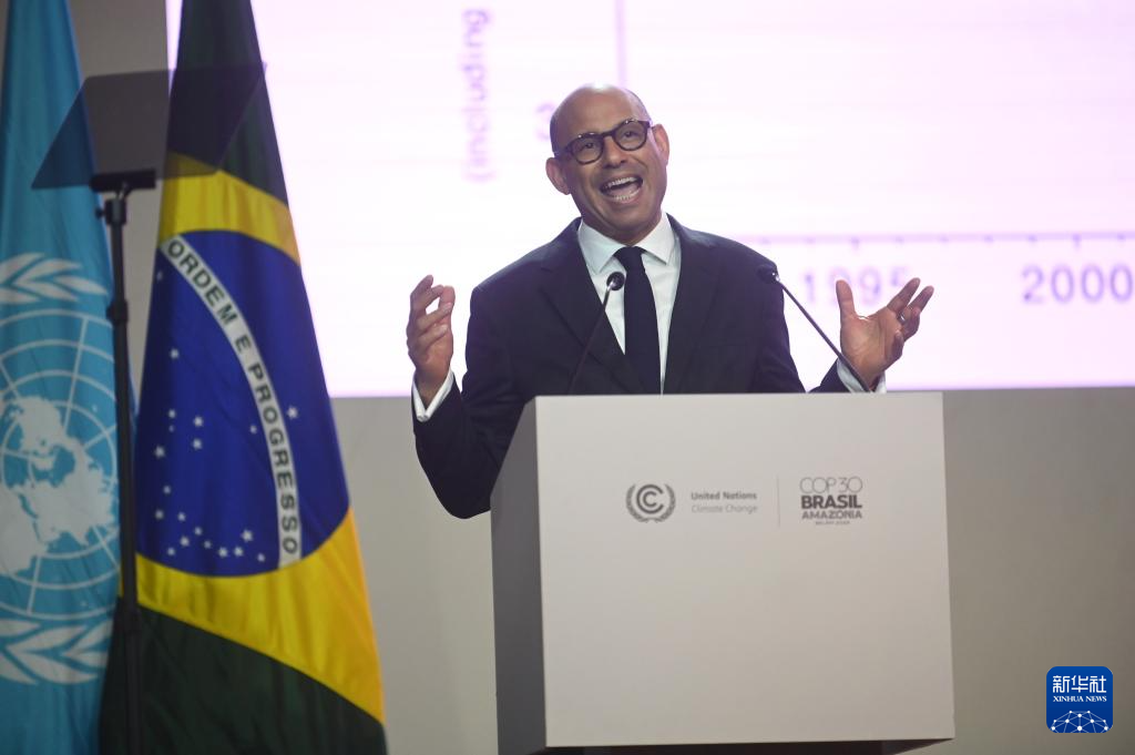 11月10日,《聯(lián)合國(guó)氣候變化框架公約》秘書處執(zhí)行秘書西蒙·斯蒂爾在巴西北部城市貝倫舉行的《聯(lián)合國(guó)氣候變化框架公約》第三十次締約方大會(huì)(COP30)開幕式上發(fā)表講話。新華社發(fā)(盧西奧·塔沃拉 攝)