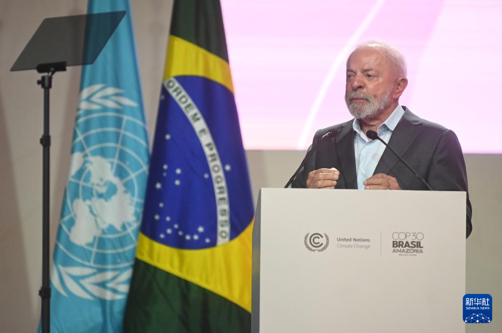 11月10日,巴西總統(tǒng)盧拉在巴西北部城市貝倫舉行的《聯(lián)合國(guó)氣候變化框架公約》第三十次締約方大會(huì)(COP30)開幕式上發(fā)表講話。新華社發(fā)(盧西奧·塔沃拉 攝)