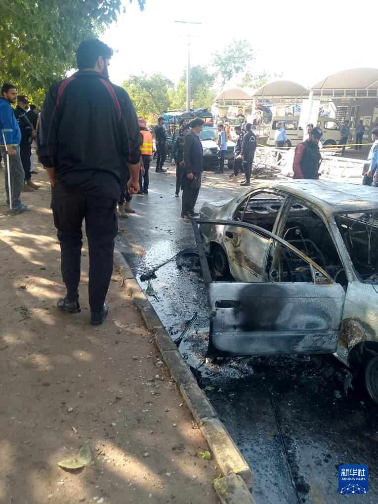 11月11日,在巴基斯坦首都伊斯蘭堡,安全和救援人員檢查爆炸現(xiàn)場(chǎng)(手機(jī)照片)。新華社發(fā)