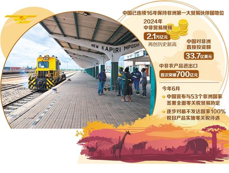 數(shù)據(jù)顯示,中國已連續(xù)16年保持非洲第一大貿(mào)易伙伴國地位。2024年,中非貿(mào)易規(guī)模達(dá)到2.1萬億元,再創(chuàng)歷史新高。