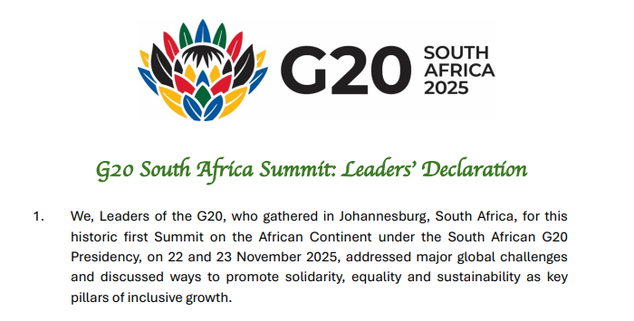 二十國集團(G20)領導人第二十次峰會當?shù)貢r間11月22日在南非約翰內(nèi)斯堡開幕。南非國際關系與合作部長羅納德·拉莫拉在當天下午召開的記者發(fā)布會上表示,與會各方已就會議核心議程達成共識,并通過了《二十國集團領導人約翰內(nèi)斯堡峰會宣言》。