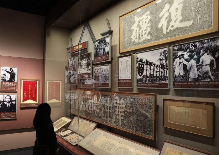 10月25日,參觀者在中國人民抗日戰(zhàn)爭紀(jì)念館參觀《不屈的寶島 丹心向祖國——臺灣同胞抗日史實展》。新華社記者 張晨霖 攝