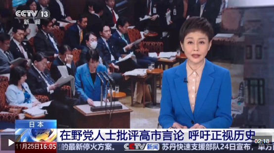 日本社民黨全國聯(lián)合常任干事 山城博治:我們大家都很氣憤,把不必要的戰(zhàn)爭主動招來,把本不該發(fā)生的事情引來,把自己拖入戰(zhàn)場。作為一個擁有和平憲法的國家,這是絕不可能被允許的事情。在1972年日中邦交正?;瘯r,日本承認現(xiàn)在的中國政府是中國唯一的合法政府,明確表示“理解并尊重臺灣是中國領土的一部分”,所以這次高市竟然能堂而皇之地說出如此不可能、不可思議的話,我感到非常憤怒。