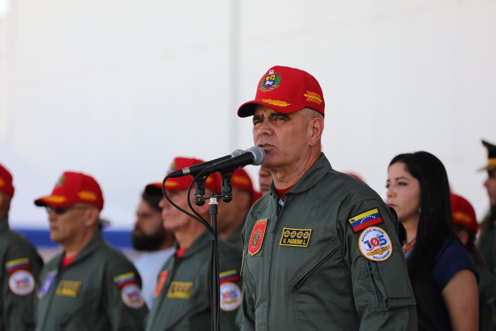 11月27日,在委內(nèi)瑞拉馬拉凱市的解放者空軍基地,委內(nèi)瑞拉國(guó)防部長(zhǎng)洛佩斯在空軍成立105周年紀(jì)念活動(dòng)上發(fā)表講話。新華社發(fā)(委內(nèi)瑞拉國(guó)防部供圖)