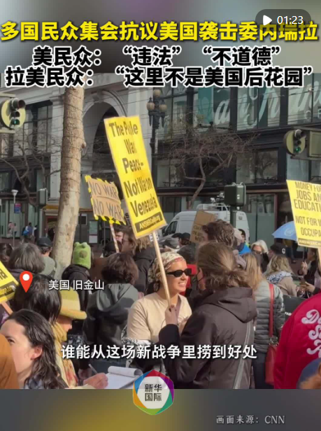 1月3日,美國多地及英國、巴西、古巴等多國爆發(fā)抗議集會,譴責(zé)美軍3日凌晨突襲委內(nèi)瑞拉并抓走委總統(tǒng)及其夫人。美國民眾譴責(zé)美國行為“非法”“不道德”。