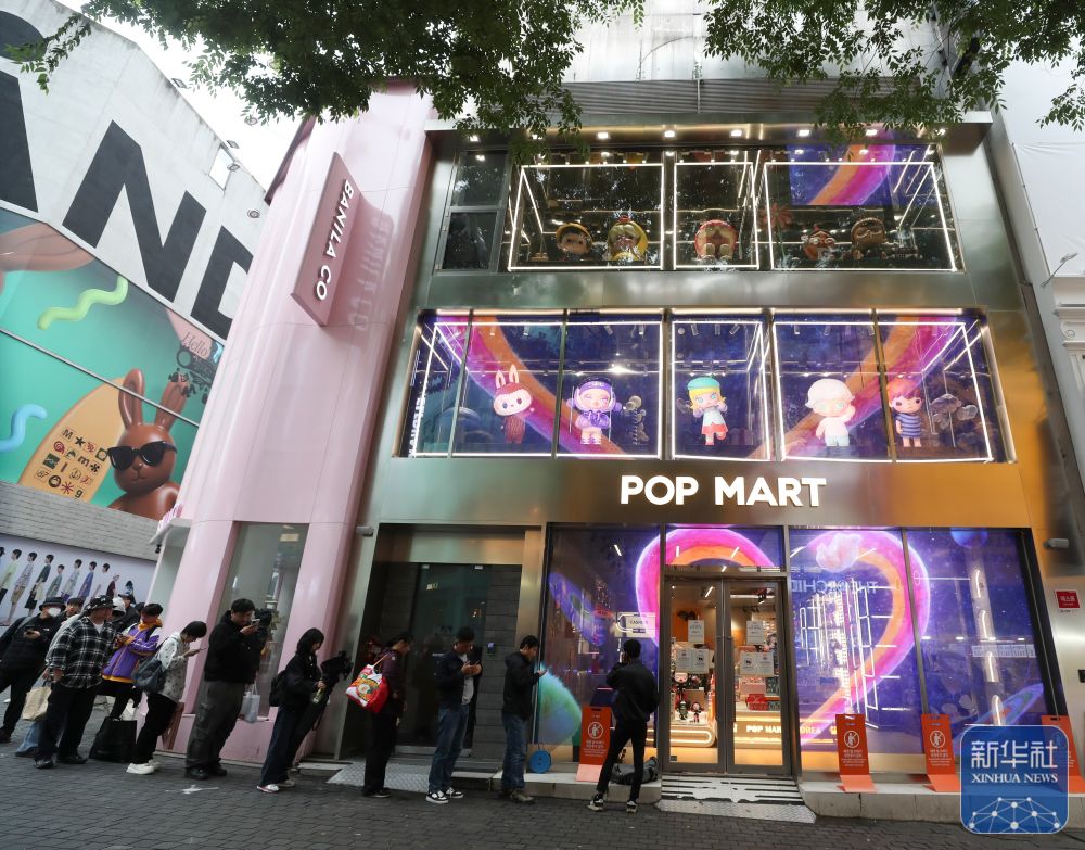 2025年5月20日,消費者在韓國首爾明洞街區(qū)的泡泡瑪特店面前排隊。