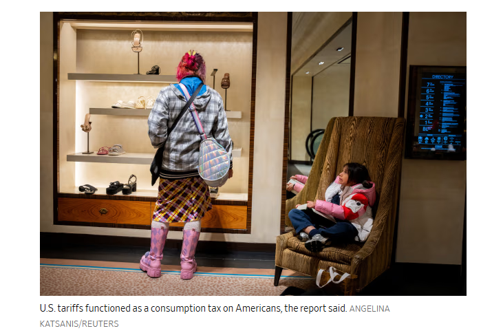 報告稱,美國關(guān)稅實際上相當(dāng)于對美國民眾征收消費稅。路透社報道截圖
