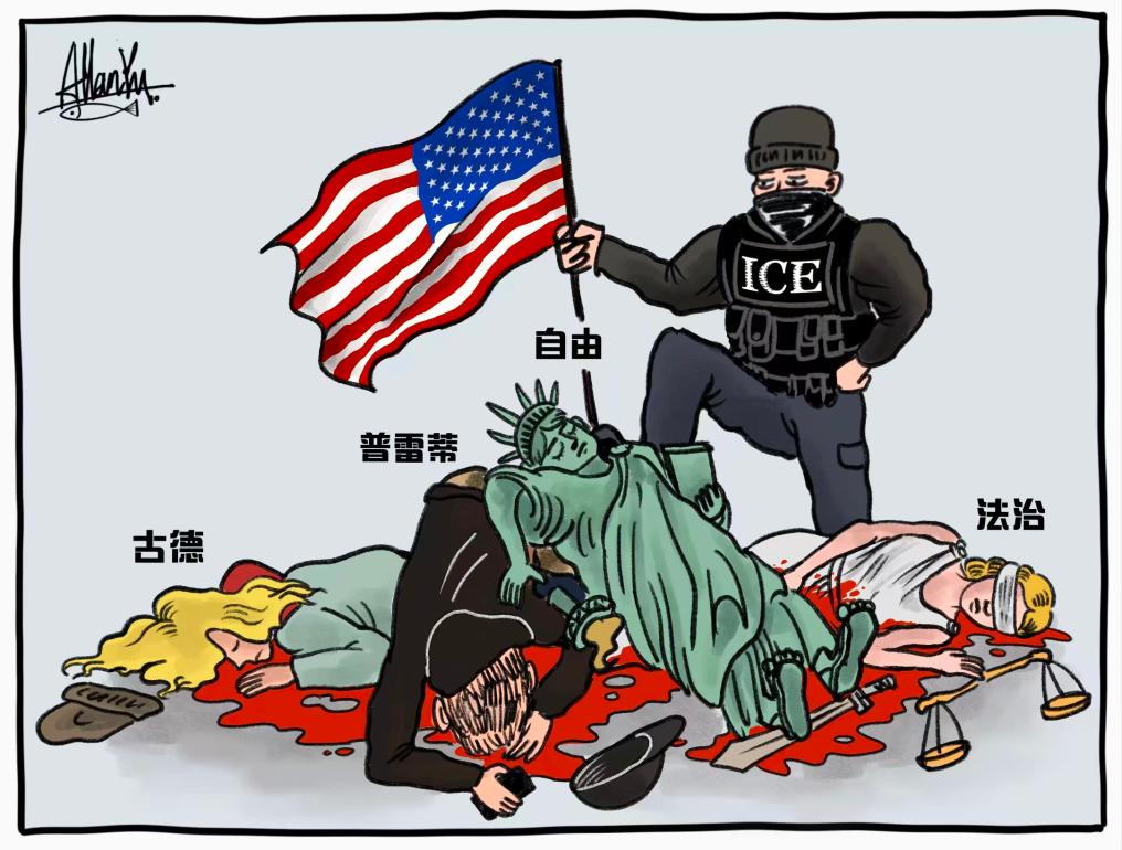 “美國已成為一個(gè)被黨爭仇恨撕裂的國家?!泵绹稌r(shí)代》周刊寫道。層出不窮的暴力執(zhí)法、無休無止的兩黨爭斗,是美國制度缺陷與治理失靈的又一例證,正加深美國民眾對未來的迷茫與不安。(漫畫:于艾岑)