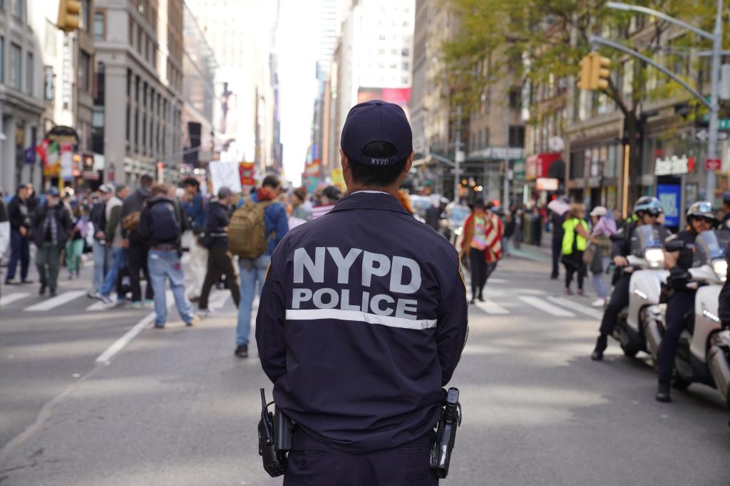2025年10月18日,在美國紐約,警察在示威游行活動(dòng)現(xiàn)場執(zhí)勤。新華社記者張鳳國攝
