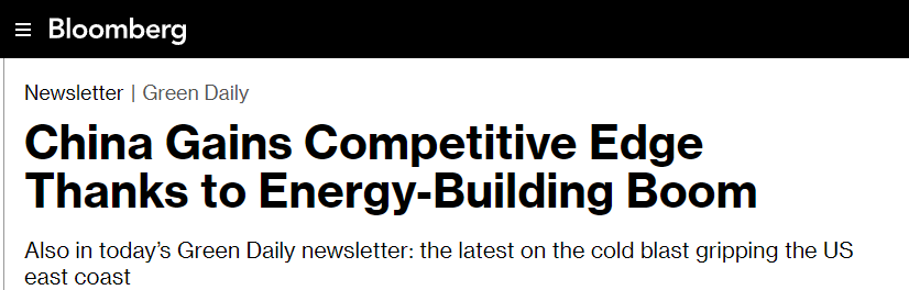 美國彭博社網(wǎng)站28日發(fā)表題為《中國憑借能源建設熱潮獲得競爭優(yōu)勢》的文章。