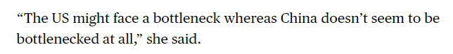 文章同時提到,相比之下,美國在幾十年前電力需求似乎趨于平穩(wěn)后,新增裝機速度一直較慢。如今,隨著人工智能的迅猛發(fā)展,美國正艱難應對數(shù)據(jù)中心等高耗能行業(yè)的電力需求,導致電力市場極為緊張。文章援引業(yè)內人士的話說:“美國可能會面臨瓶頸,而中國似乎完全沒有瓶頸。”