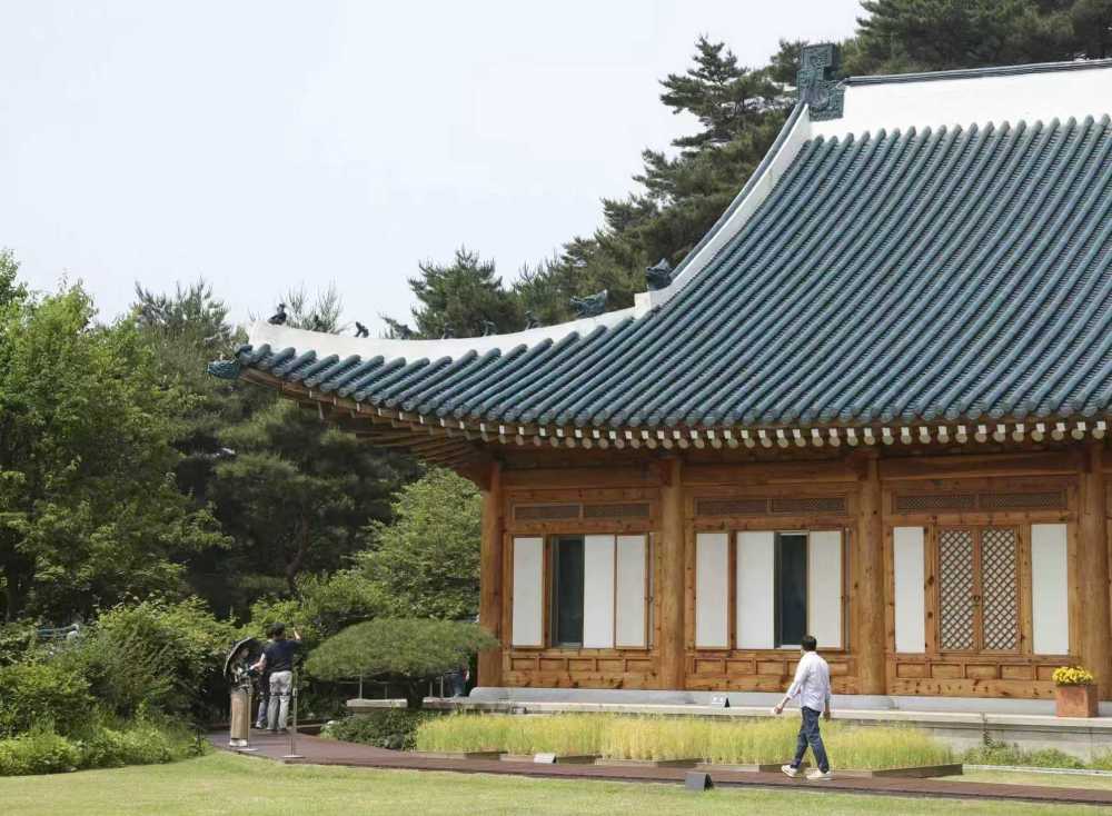 開放期間,迎賓館、本館、官邸等核心建筑悉數(shù)對外開放。本館是青瓦臺的核心建筑,設(shè)有總統(tǒng)辦公室、宴會廳、接見室等功能空間。其建筑風格融匯韓國傳統(tǒng)審美:藍色韓式瓦片覆蓋的標志性屋頂最為醒目。昔日只有外國政要、部長級以上高官方能踏入的本館,如今成了最熱門的“打卡點”。