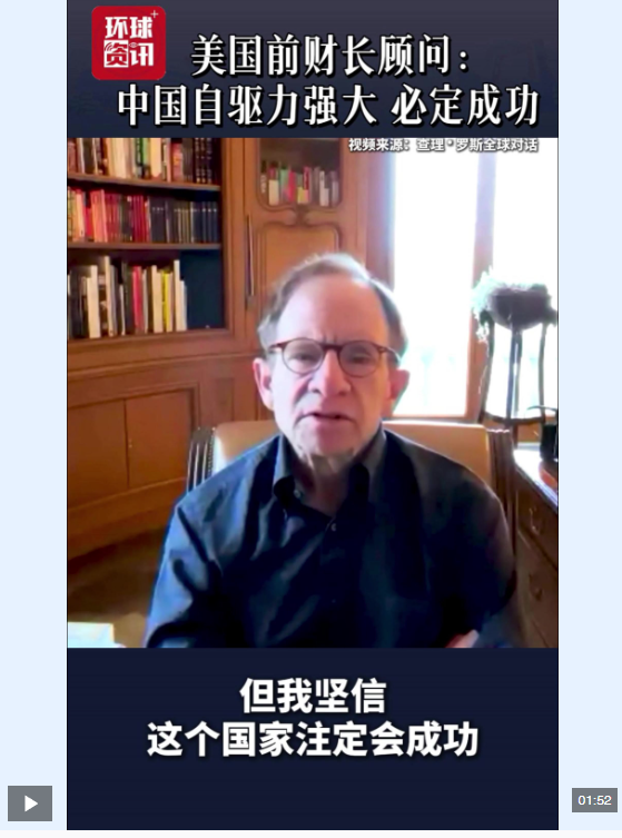 近日,美國前財政部長顧問史蒂文·拉特納在接受美國播客節(jié)目《查理·羅斯全球?qū)υ挕窌r表示,近20年來中國經(jīng)濟的高速發(fā)展不僅源于經(jīng)濟因素,更得益于中國人民追求成功的強大自驅(qū)力。他指出,這種難以用經(jīng)濟模型量化的拼搏精神深刻塑造了國家的經(jīng)濟前景,并認(rèn)為中國必定會成功。