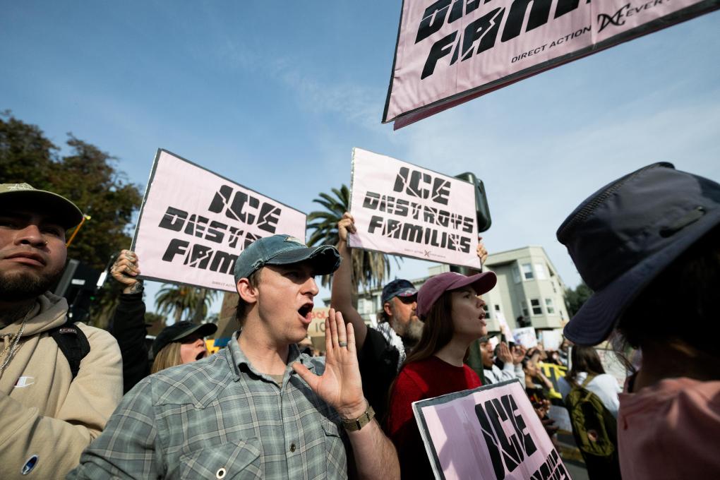 2026年1月30日,人們在美國加利福尼亞州舊金山參加示威游行,抗議特朗普政府暴力移民執(zhí)法。新華社發(fā)(朱子于攝)